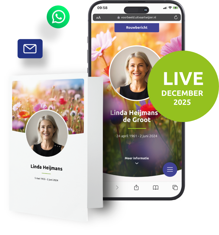Traditionele en digitale rouwkaart om de directe kring te informeren